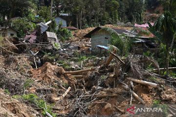 Kondisi rumah hancur dan terisolir di Desa Sigiring-Giring, Kecamatan Tukka, Tapanuli Tengah, Sumatera Utara, Jumat (30/1/2026). Dua bulan pascabencana banjir bandang dan tanah longsor, masih ada empat desa di Kecamatan Tukka, Tapanuli Tengah yang terisolir yakni Desa Sigiring-Giring, Sait Kalangan II, Saur Manggita, dan Aek Bontar. ANTARA FOTO/Indrianto Eko Suwarso/agr
